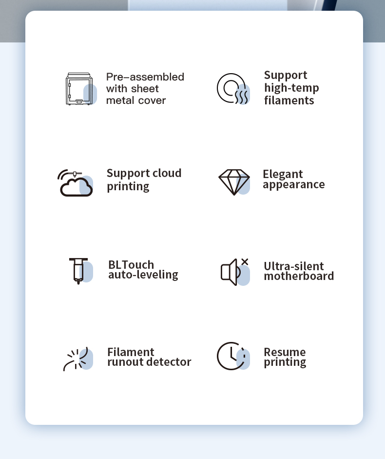 - Gebruiksvriendelijke Interface: De touchscreeninterface maakt het eenvoudig om instellingen aan te passen en je prints te beheren, terwijl de printer ook is uitgerust met een automatische bednivellering voor eenvoudigere kalibratie.