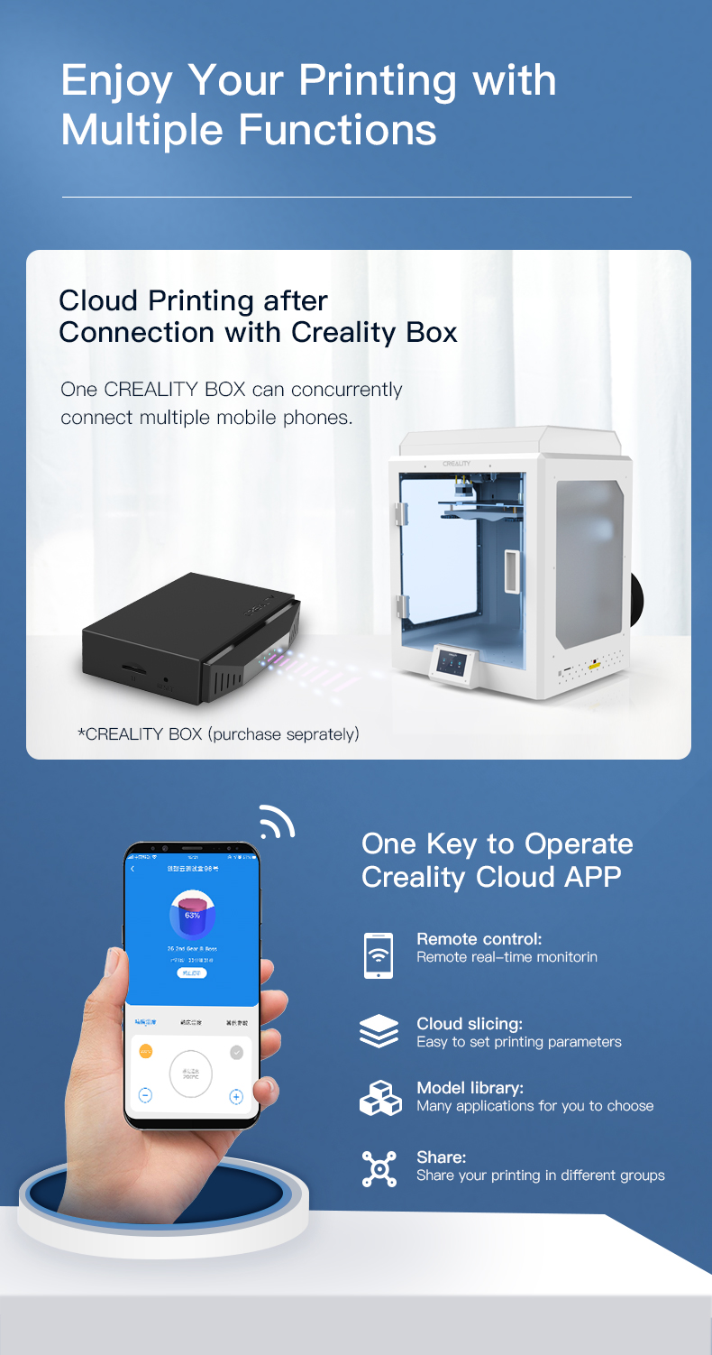 - Geavanceerde Temperatuurbeheersing: De CR-5 Pro H is uitgerust met een verwarmd bed en geavanceerde extrusietechnologie voor het printen van een breed scala aan materialen zoals PLA, ABS, PETG en zelfs nylon en TPU.
