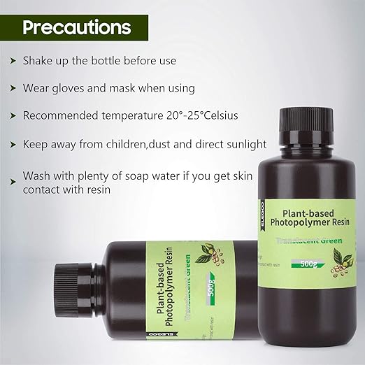 - Compatibiliteit: De Elegoo Plantaardige Hars Clear Green is compatibel met de meeste resin 3D-printers, waaronder de populaire Elegoo Mars en Elegoo Saturn, evenals andere LCD/DLP printers.