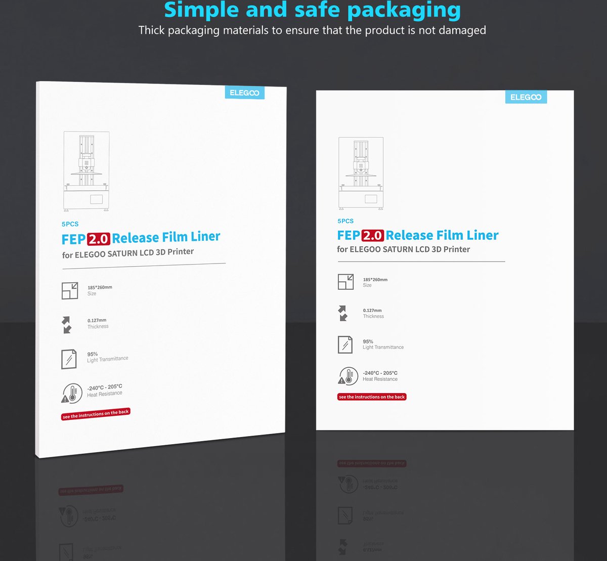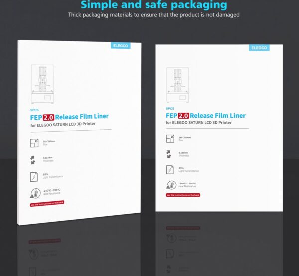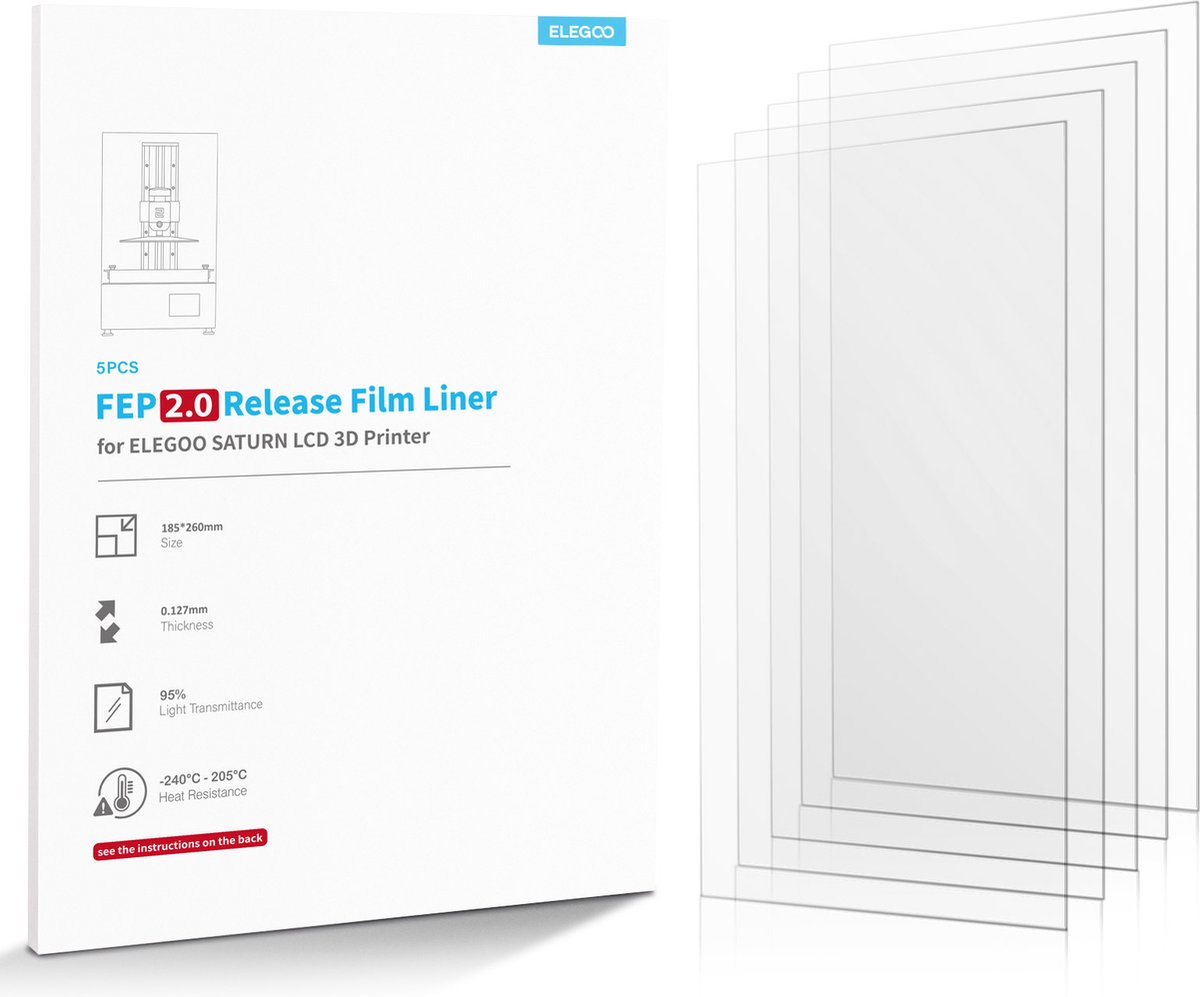 - Compatibiliteit: De Elegoo Saturnus FEP-film V2.0 is specifiek ontworpen voor de Elegoo Saturn 3D-printer maar is ook compatibel met andere printers die FEP-film gebruiken.