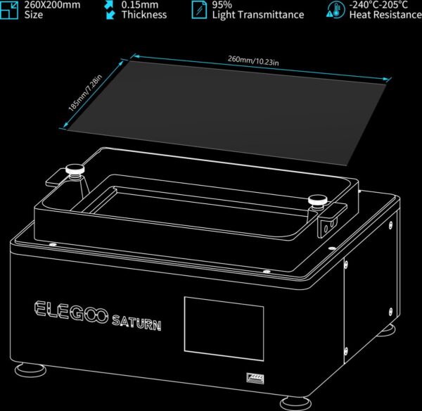 - Bescherming van het resin-bed op Elegoo Saturn 3D-printers en compatibele modellen.
