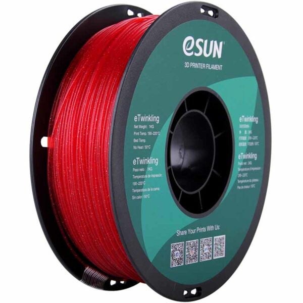 Breng je 3D-prints tot leven met het eSun eTwinkling Filament 1,75 mm – Helder. Dit innovatieve filament is ontworpen om een betoverend glinsterend effect toe te voegen aan je ontwerpen, waardoor ze opvallen met een heldere en sprankelende afwerking. Het eTwinkling filament is ideaal voor het maken van gedetailleerde kunstwerken, sieraden, accessoires en decoratieve objecten die een magische uitstraling vereisen.